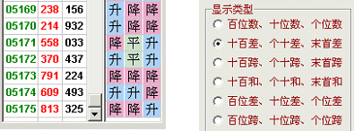 当前显示类型为“两位差”,05175期开奖为813,辅助列为325,含意就是十百差为3,个十差为2,末首差为5。