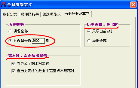 十、历史数据默认只保留最近2000期,当软件退出时会检查并直接更新数据文件。