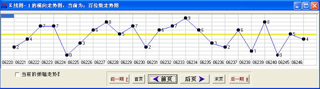 4-6)百位跨:后一期的奖号百位与前一期的奖号百位相减的绝对值,绝对值计算,十位跨、个位跨与此类似。