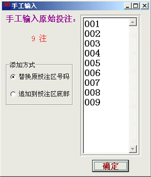 可向投注区中手工录入一些号码,例如将报纸等媒体推荐的号码录入到投注区表格,以进一步利用组号大师进行缩水。格式如下:每个号码占一行。