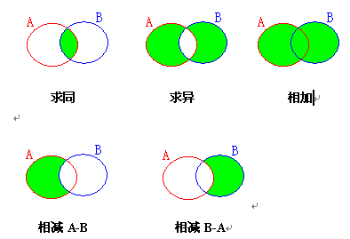 2、求异,即求A与B的二者不相同的部分。