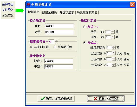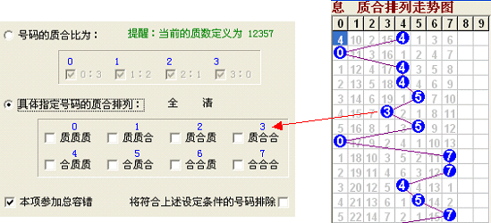 默认的质数定义为1、2、3、5、7,合数为质数以外的其它5位数字,重新自定义质合数可以到参数定义里设定。