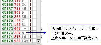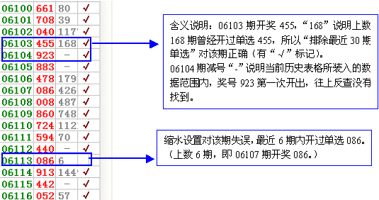 2)如果设置“排除最近3期内开过的十个位相同”,则05176期的缩水结果中将排掉后2位为07、76、33的号码,即形如“*07”、“*76”、“*33”的所有号码。