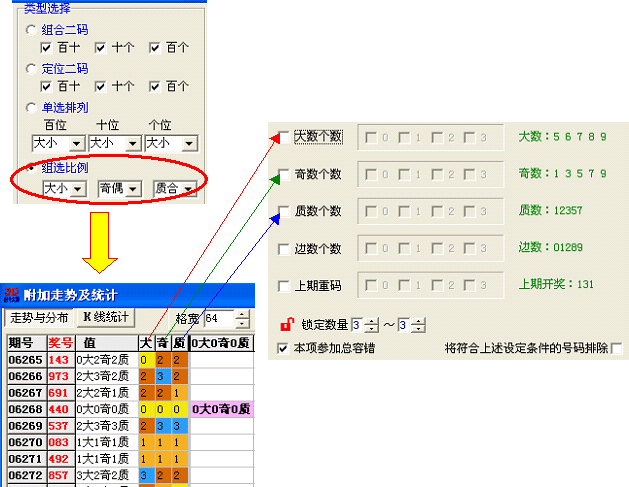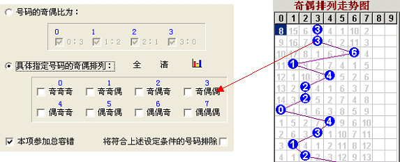 “奇偶”项可设定号码的奇偶比与奇偶排列。