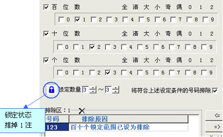 注意:利用[百十个]过滤项,有时比“分位匹配”更加灵活方便。“分位匹配”相当于[百十个]设为“锁定数量为3”时的特例。也就是说,当[百十个]过滤项开启了“锁定”功能,且锁定数量为3时,与“分位匹配”实现的功能相同。