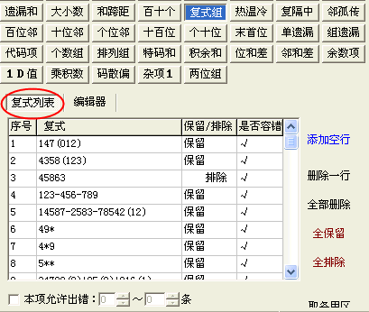 这两个关于单组选遗漏值的过滤。与 “单选遗”,“组选遗”“遗漏和”不同,因为原来的这3个都是取尾数的。新增的这两个“单遗漏”和“组遗漏”,是可以取实际值的。