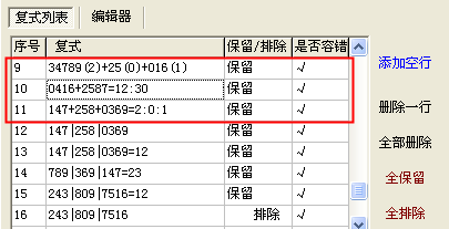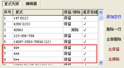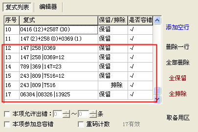 例如号码287可拆分成28、27、78三个二码,当为“保留”时,只要28、27、78三个二码中的任何一个打了勾,号码287都将会保留下来。