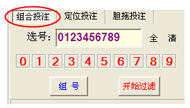 1)组合投注。可以直接输入0-9中的任意号码,或用鼠标选择号码。“全”表示10个号全选,“清”表示全部清除。见下图: