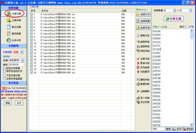 在多年的免费版大底交集过滤工具的研发基础上,3D组号大师软件的研发小组积累了丰富的大底软件开发经验,使新推出的超级大底系列软件无论是在内部算法及执行效率等方面都进行了极大的优化,使算法设计更加成熟,运算速度更加快捷,界面功能也更加人性化。