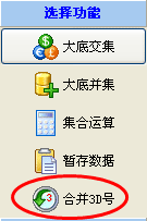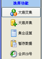 *功能选择,如下图,用于选择五个主要功能项,前四个功能使用方法一样,只是针对不同的彩种,进行不同的数据格式运算,3D超级大底第五个功能是“合并2D号“。