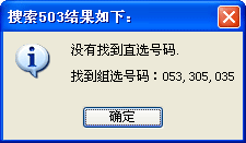 如下图是在某框中搜索503的提示结果,说明该框中没有直选的号码503,却找到三注组选号码:053、305、035