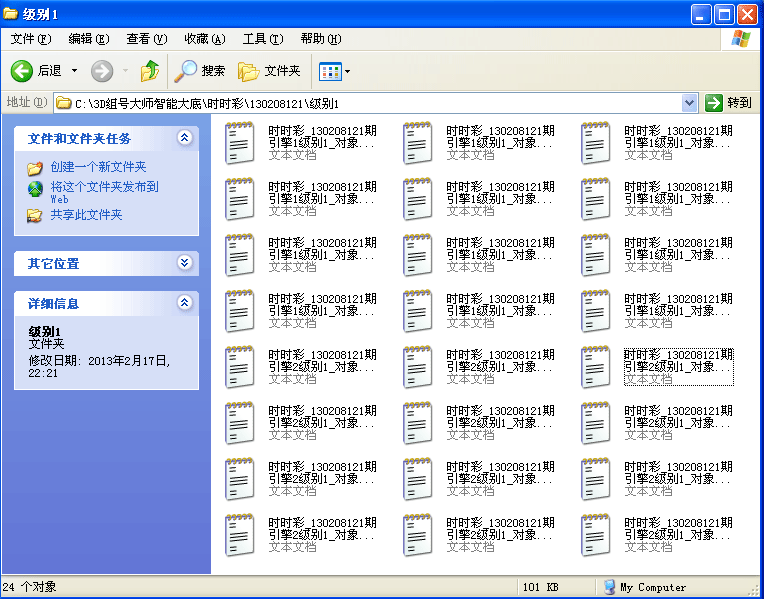 3D组号大师在瞬间(不到2秒的时间)就已经智能缩水的4个级别,每个级别24大底,一共是96个大底保存到您的电脑里了,我们打开看下如下图: