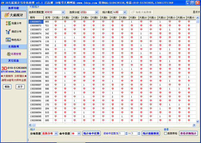 第三项是生成多期大底,适合很长时间没有用软件,或时时彩开奖频繁的彩种,需要对往期大底进行统计分析的用户(利用3D大底统计与分布处理软件)。