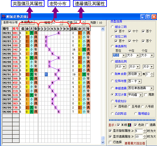 1,当类型选择为“组合二码”或“定位二码”时,遗漏值取的是三个二码的最小遗漏值。