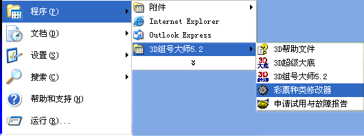 六、5.0以上版本支持彩种很多,为更快地在各彩种之间切换,5.2版新增彩种修改器,默认安装在软件文件夹下,打开方式如下: