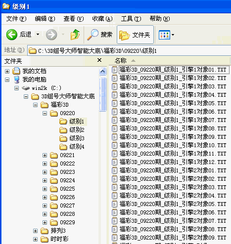 在根目录下会自动创建: 彩种目录、期号目录、级别目录。