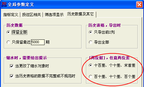 3)[两位组]里的“任意两码差”的定义,有用户在WIN7下无法选择,现在已经改在[参数定义]里。