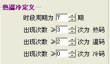 出现次数大于或等于3次的为019,出现次数大于或等于2的为2348,其余为的冷码:567,那么热温冷码断组分组就为