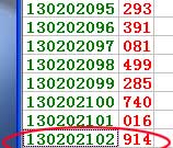2)按上图推荐热温冷分组的断组,我们设下期130202102期断组为:019-2348-567,结果开奖914—对,第三组不包含奖号,断组成功。(如下图)